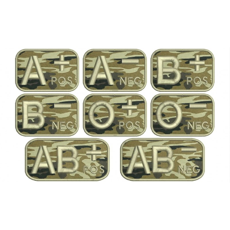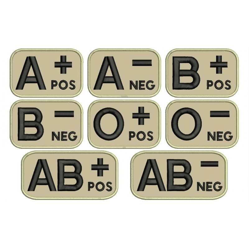 Parche Bordado GRUPO SANGUINEO (Uniforme Militar). Tamaños disponibles: