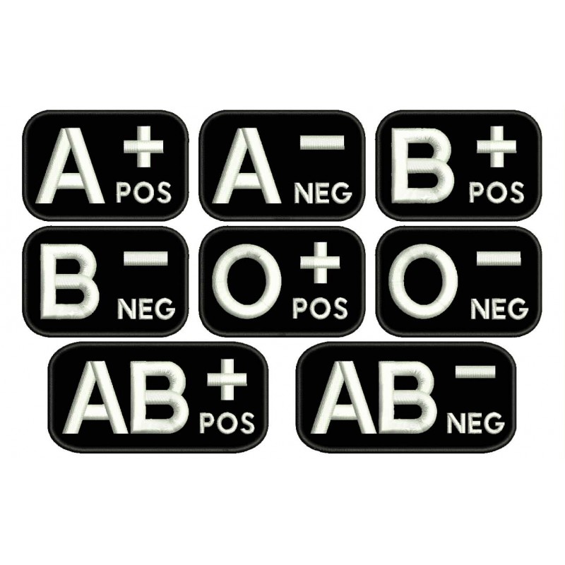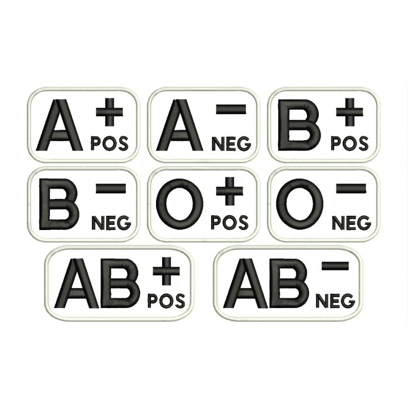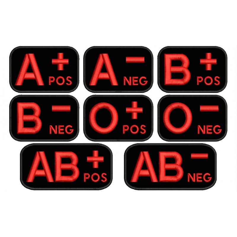 Parche Bordado GRUPO SANGUINEO. Tamaños disponibles:
