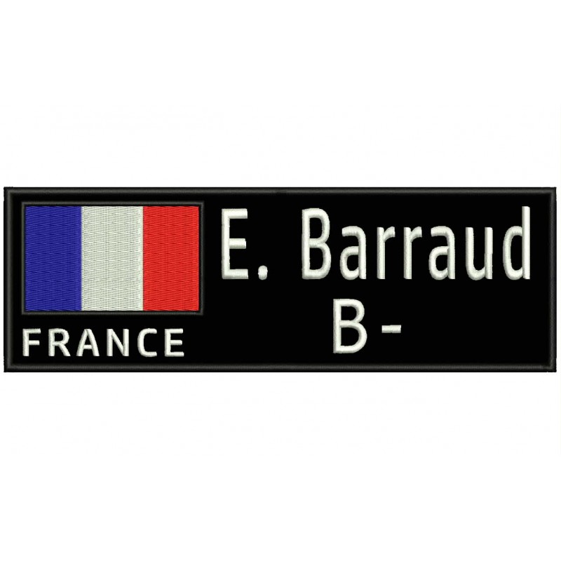 - Parche Bordado Personalizable con BANDERA, NOMBRE y GRUPO SANGUINEO. |